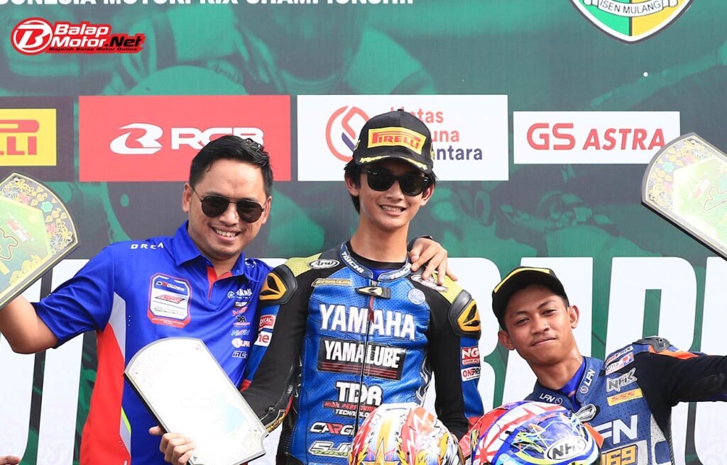 Andi Muhammad Sadri (kiri) bersama tim balap motornya salam sebuah event di Sulsel. (IST)